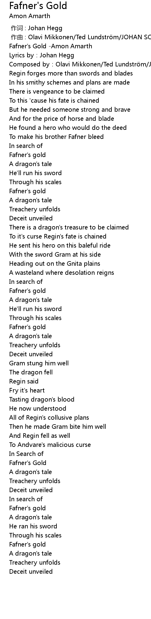 | [00:00.411] | Fafner's Gold -Amon Amarth |