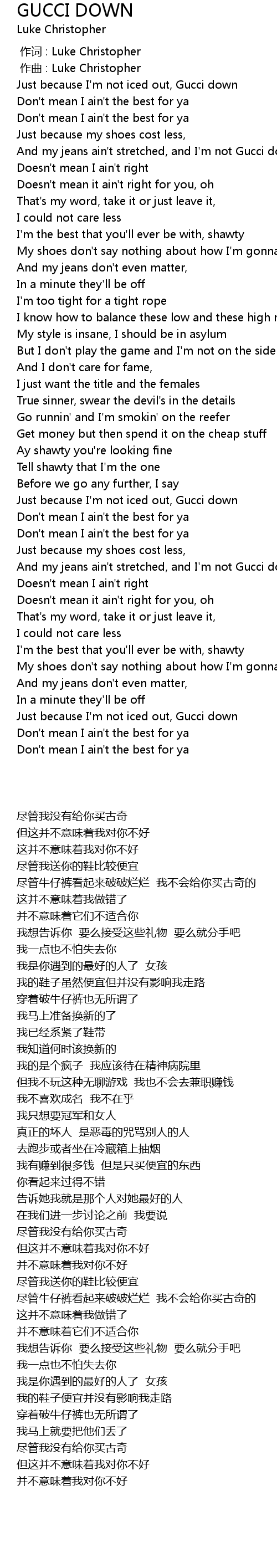 | [00:10.42] | Just because I' m not iced out, Gucci down |