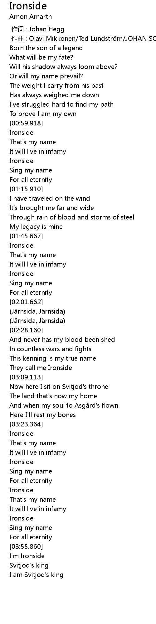 | [00:00.000] | 作词 : Johan Hegg |