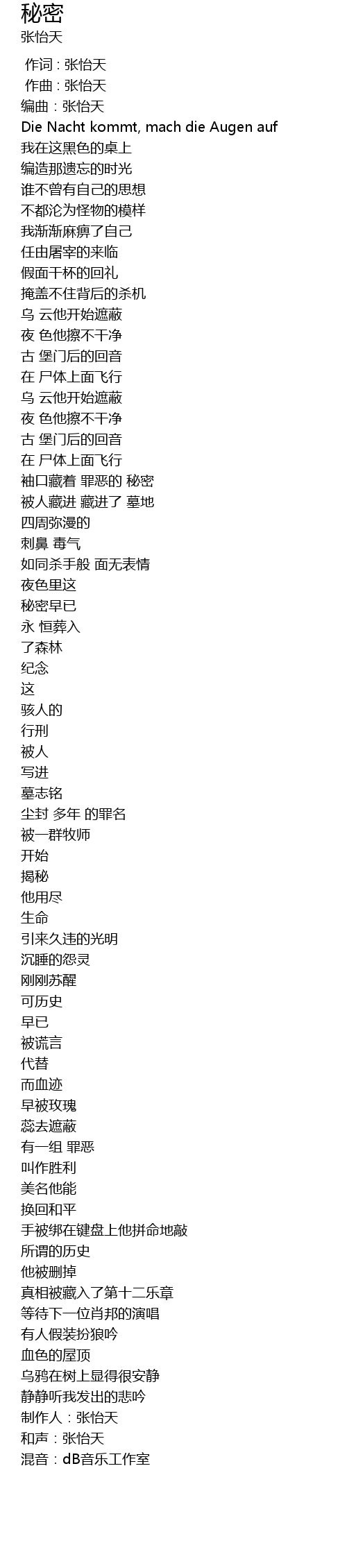 | [00:04.730] | 编曲:张怡天 |
