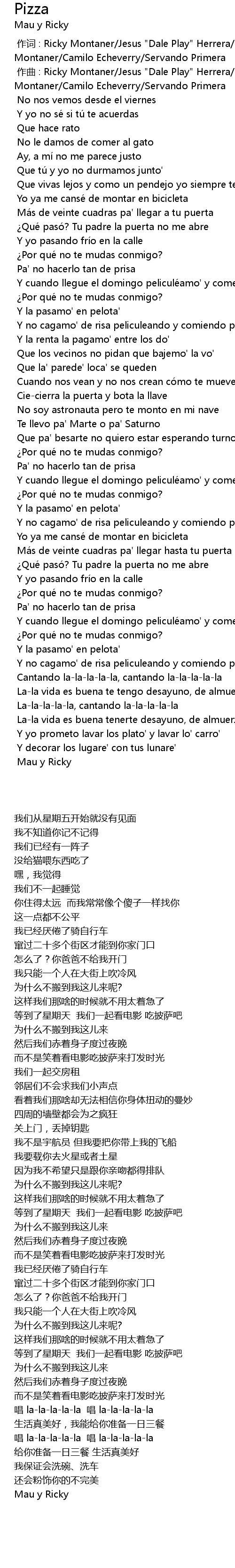 | [01:26.461] | Y cuando llegue el domingo peliculé amo' y comemo' pizza |