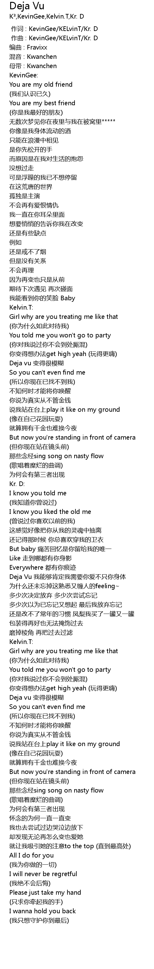 | [00:00.000] | 作词 : KevinGee/KELvinT/Kr. D |