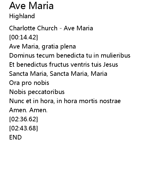 | [00:16.42] | Ave Maria, gratia plena |