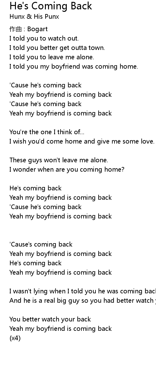 | Yeah my boyfriend is coming back | |