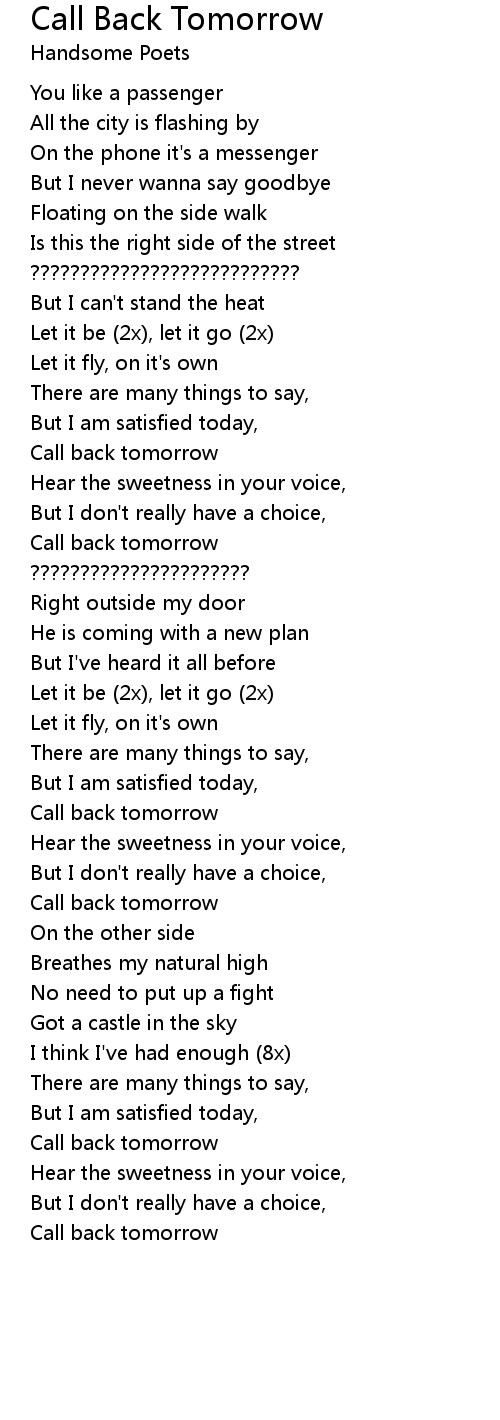 Call Back Tomorrow 歌词