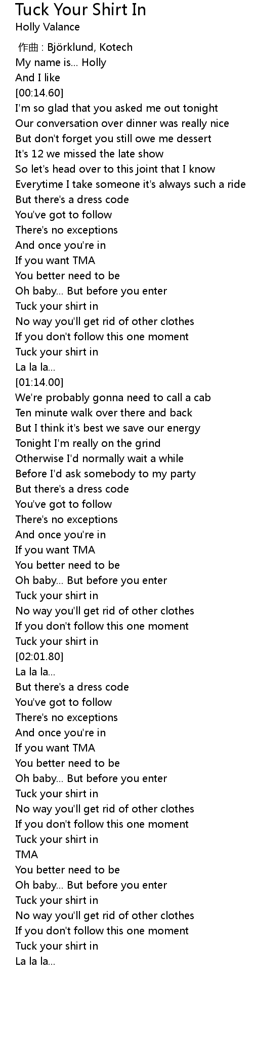| [01:03.00] | Tuck your shirt in |
