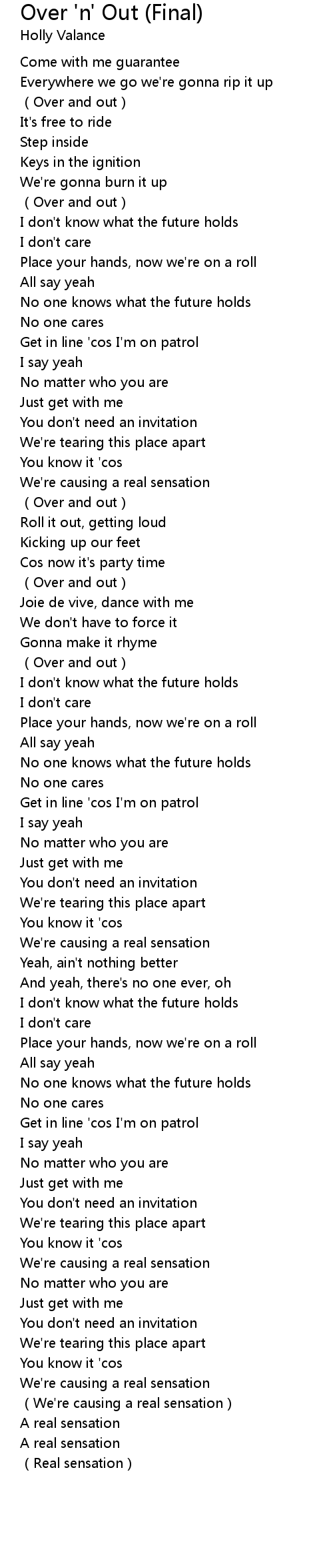 | 歌曲 | Over 'n' Out (Final) |