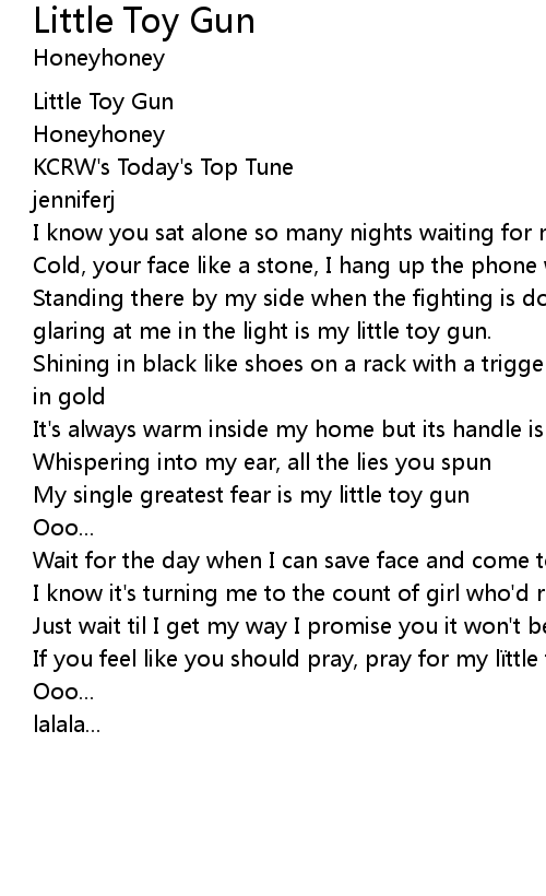 | [01:49.81] | If you feel like you should pray, pray for my l ttle toy gun |