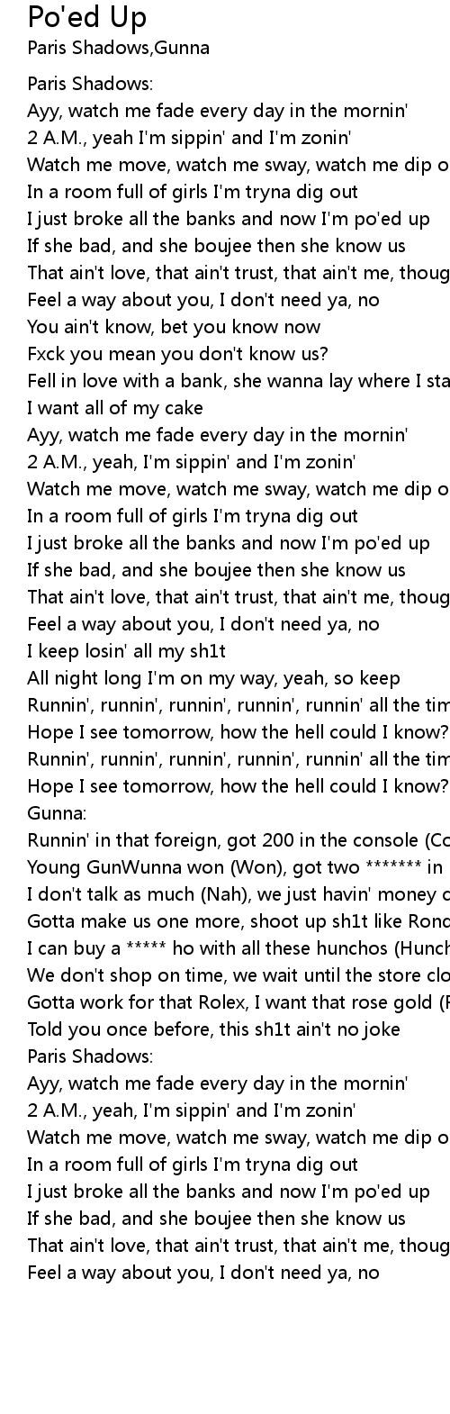 | [02:08.427] | I just broke all the banks and now I'm po'ed up |