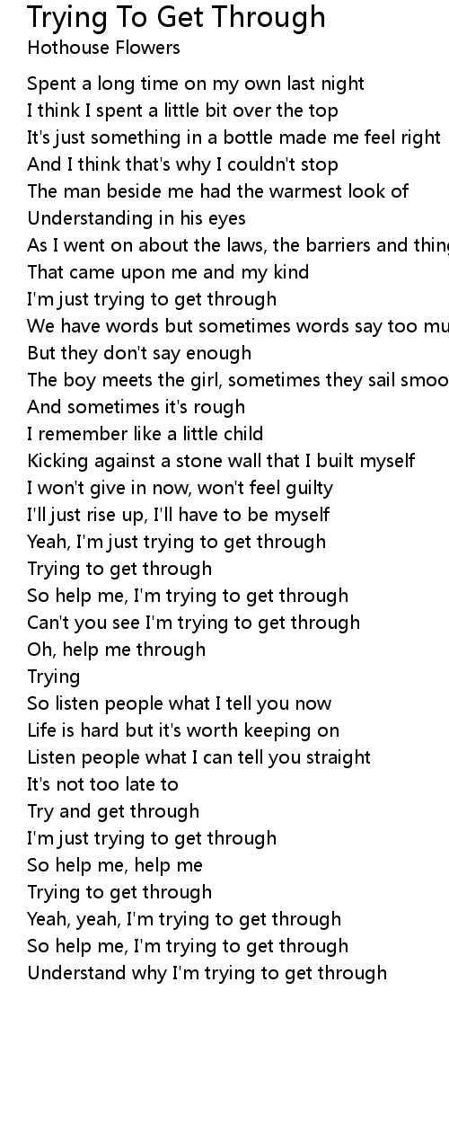 So help me, I'm trying to get through |