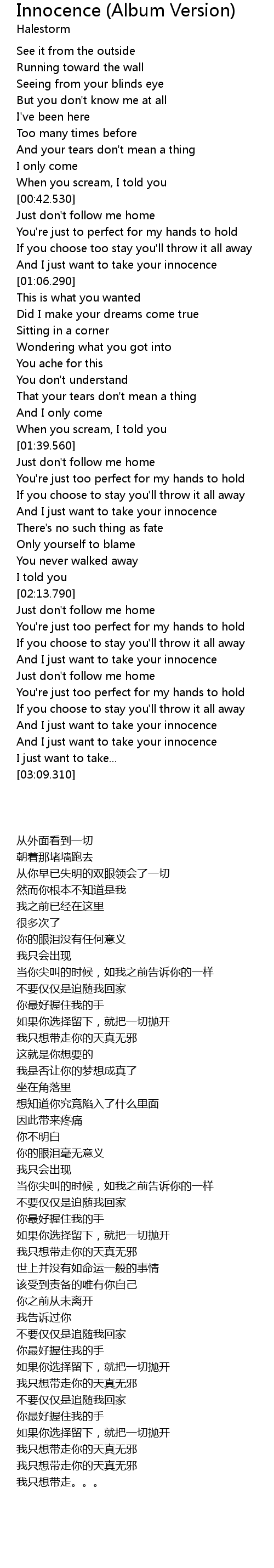 And I just want to take your innocence |