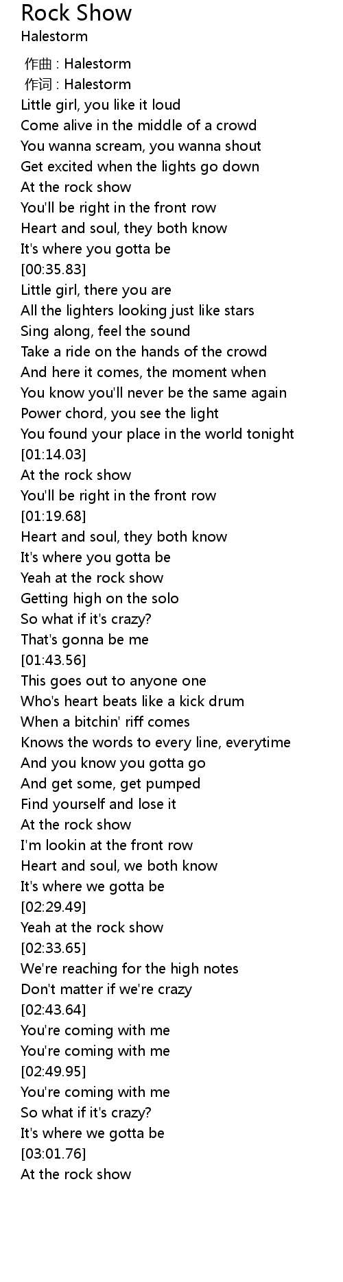 | [02:32.24] | Yeah at the rock show |