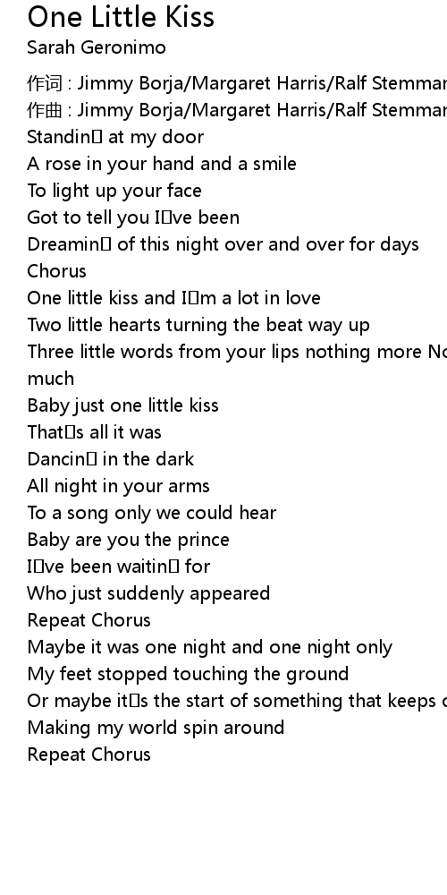 | 歌曲 | One Little Kiss |