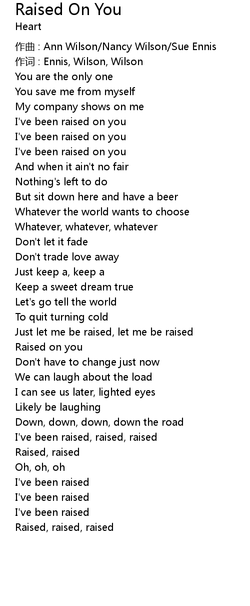 | 歌曲 | Raised On You |