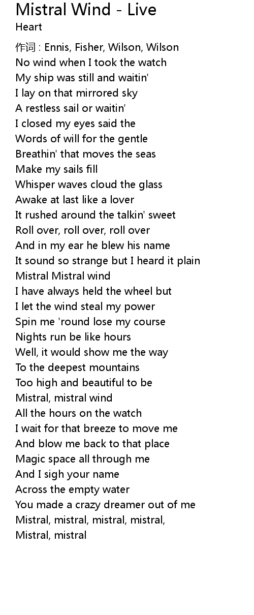 | 歌曲 | Mistral Wind - Live |