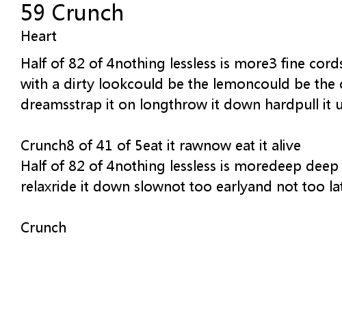 | Half of 82 of 4nothing lessless is moredeep deep waterwhere the big fish gorelax relaxride it down slownot too earlyand not too lateon the money now incinerate59 | |