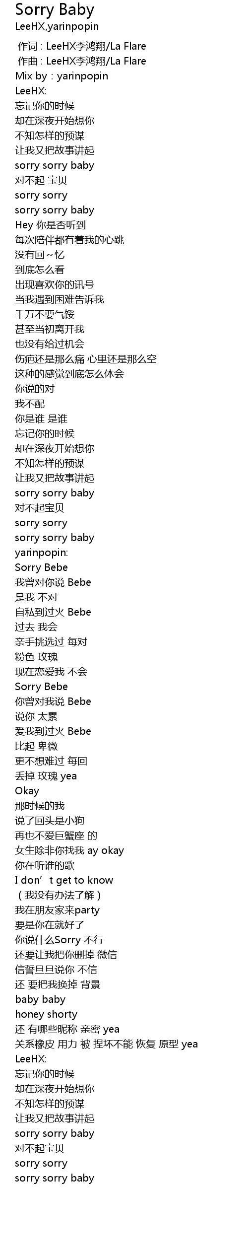 | [02:36.00] | nǐ shuō shí mǒ Sorry bù xíng |