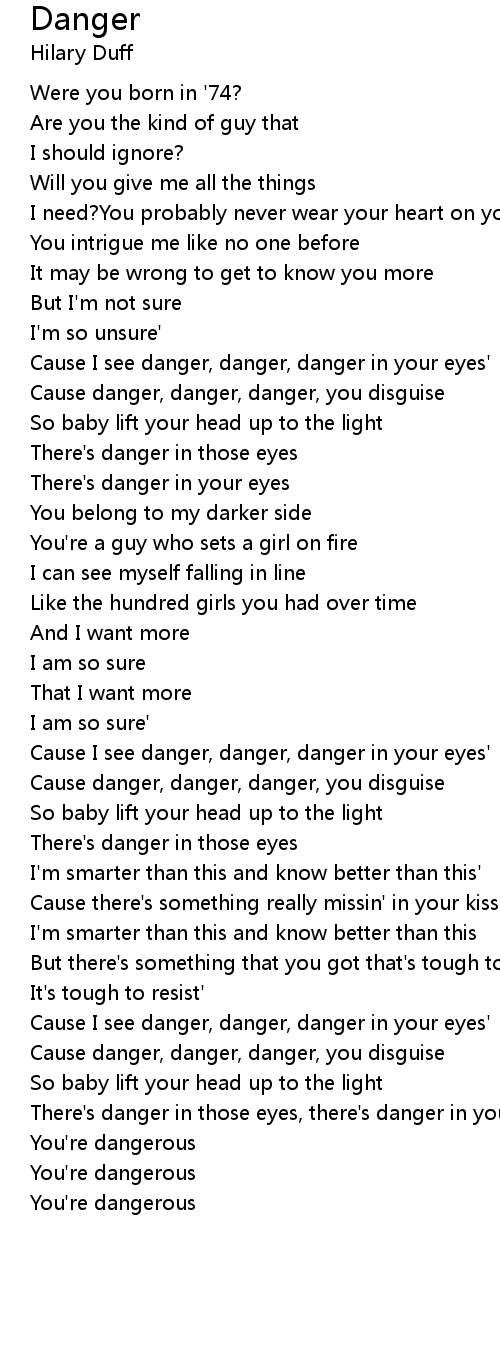 | There' s danger in those eyes, there' s danger in your eyes | |