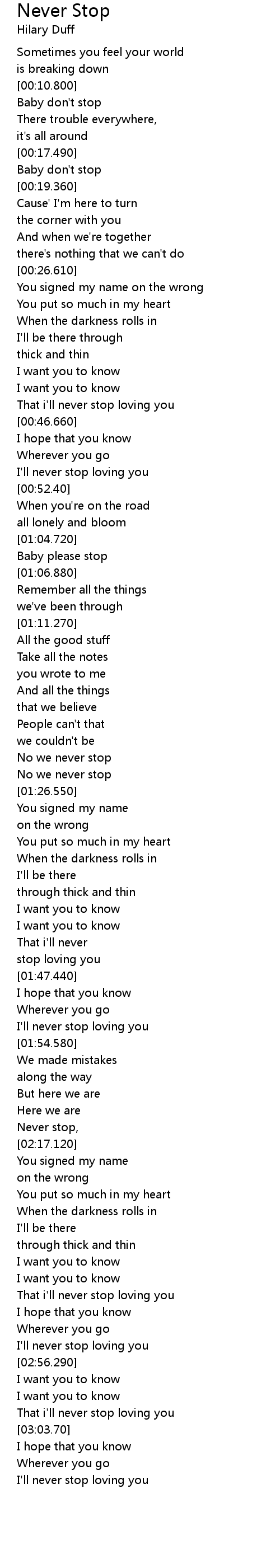 | [03:00.430] | That i'll never stop loving you |