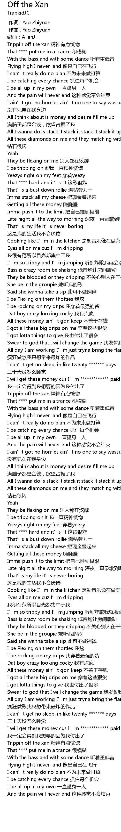 | [02:47.712] | Trippin off the xan 精神有点恍惚 |