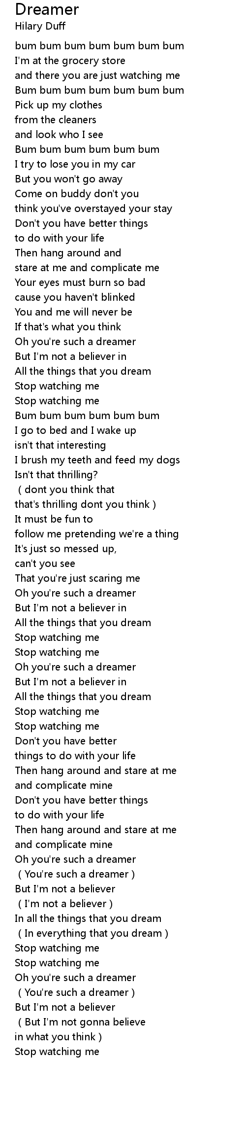 | [02:48.460] | Oh you' re such a dreamer |