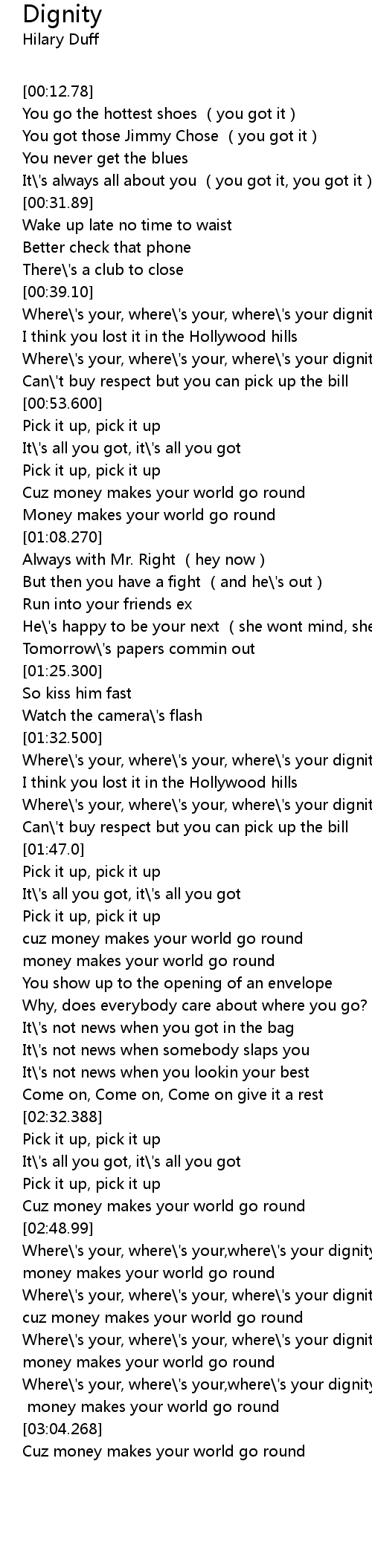| [02:52.78] | Where\'s your, where\'s your, where\'s your dignity? |