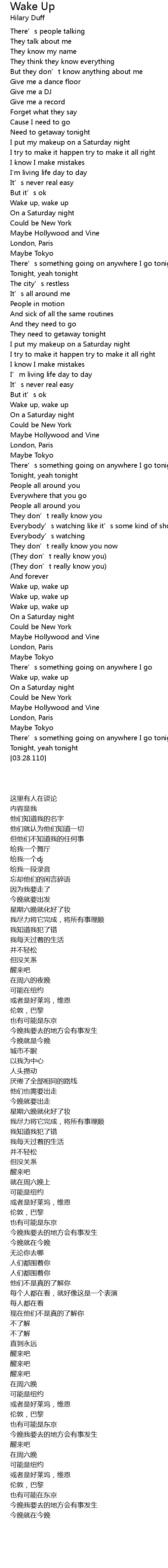| [03:06.460] | Wake up, wake up |