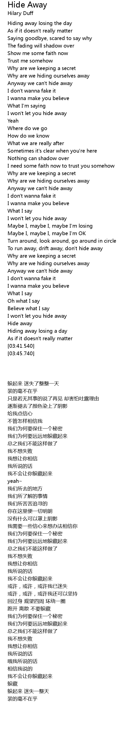 | [03:23.930] | Hide away |