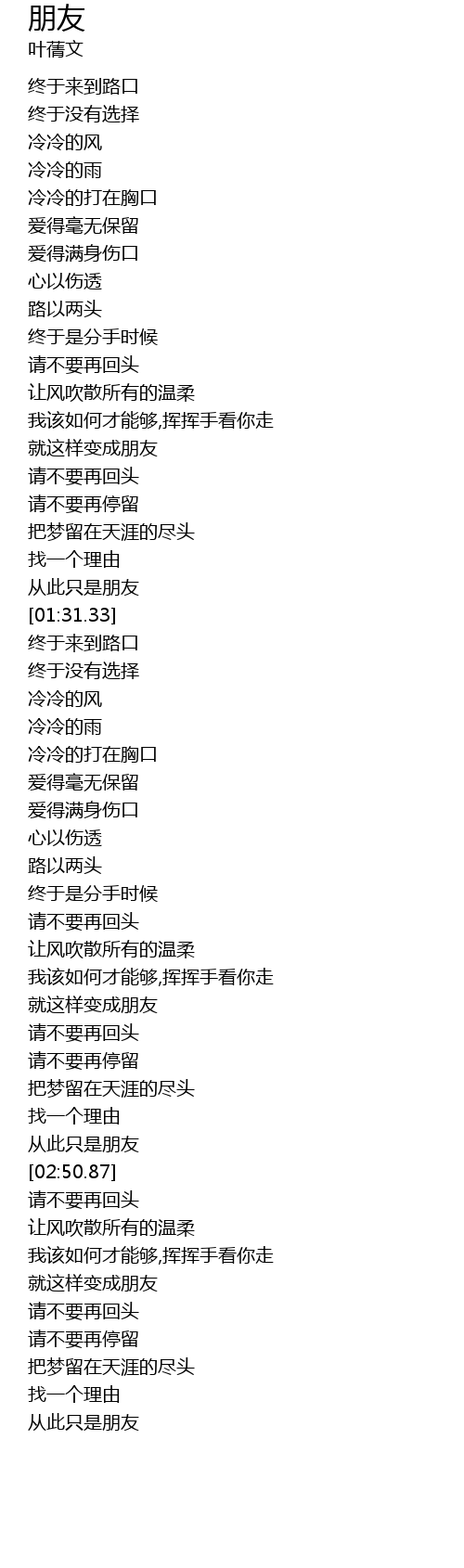 | [01:27.38] | cóng cǐ zhǐ shì péng yǒu |