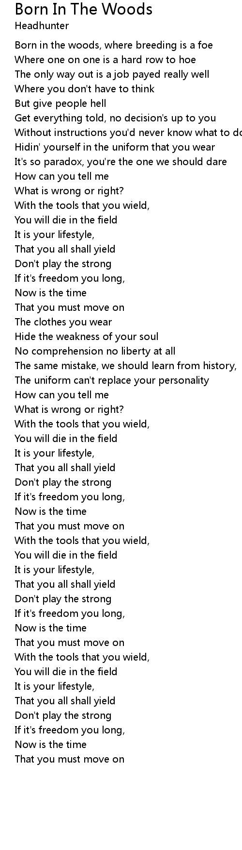 Born in the woods, where breeding is a foe |