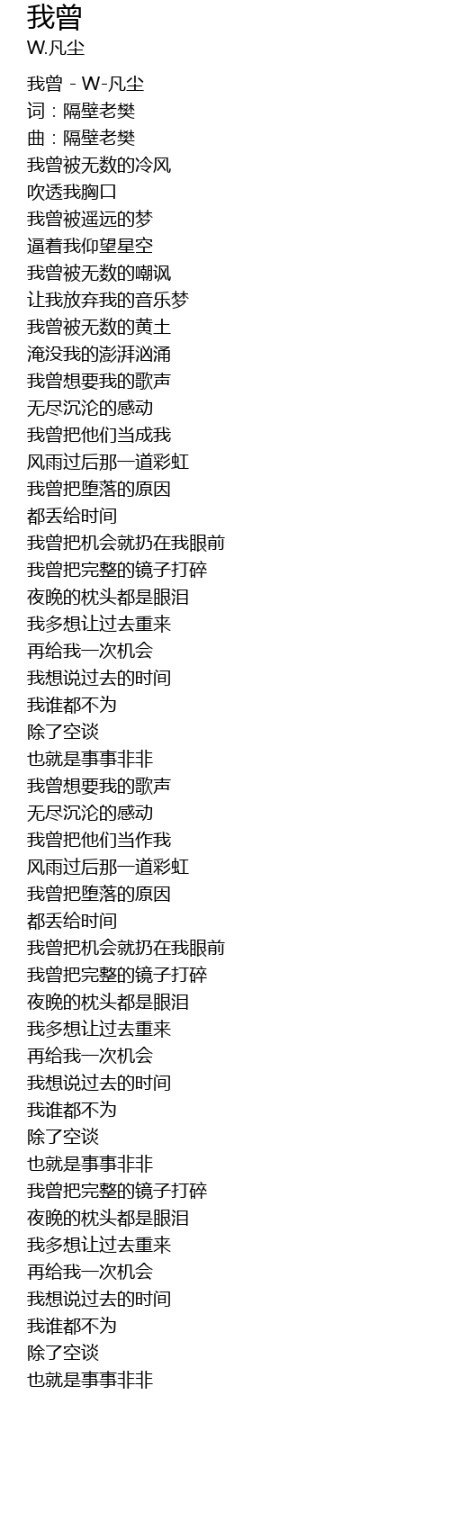 | [00:19.426] | 我曾被无数的嘲讽 |