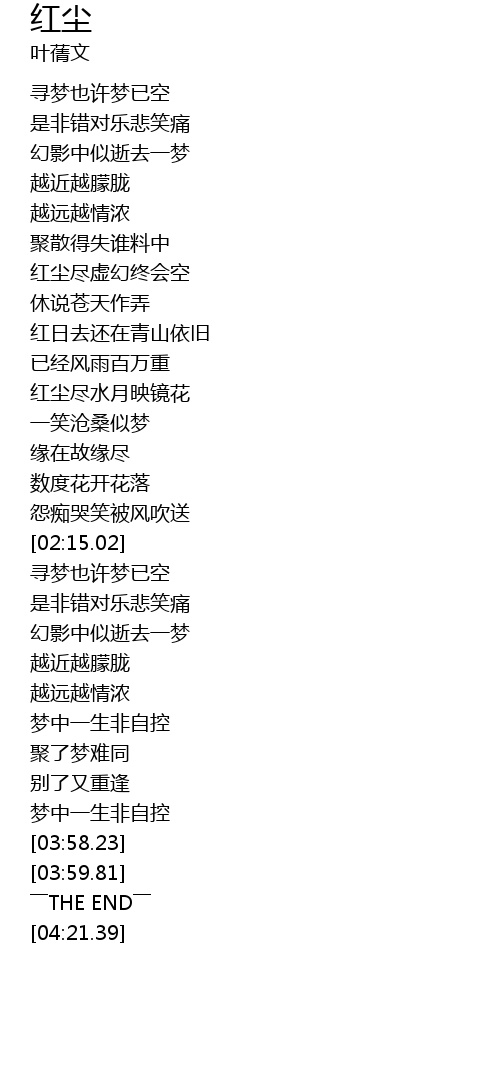 | [01:23.55] | 红尘尽虚幻终会空 |