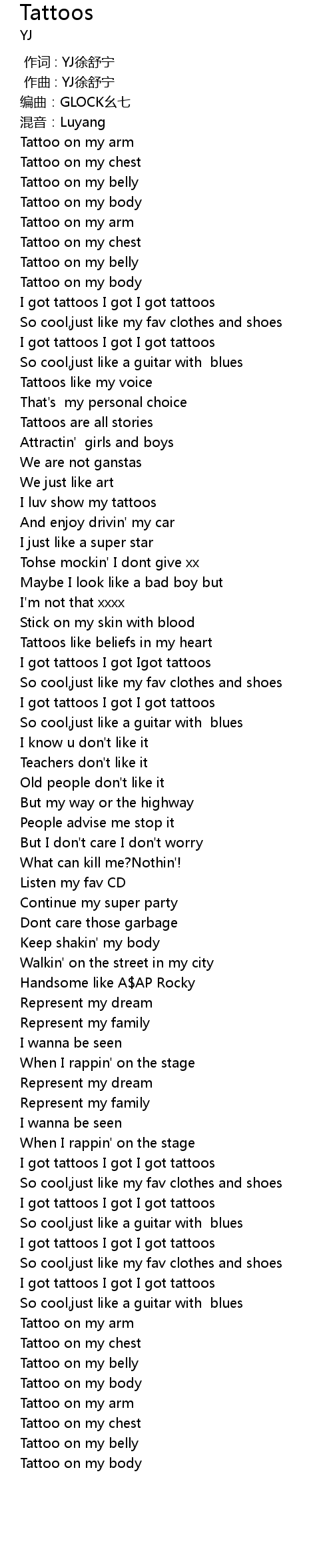 | [00:36.89] | I got tattoos I got I got tattoos |