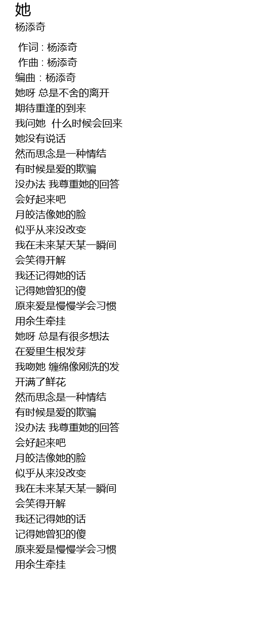 | [00:23.193] | 她呀 总是不舍的离开 |