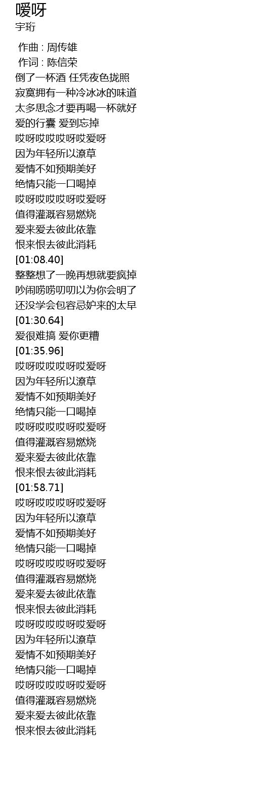 | [01:37.02] | 哎呀哎哎哎呀哎爱呀 |