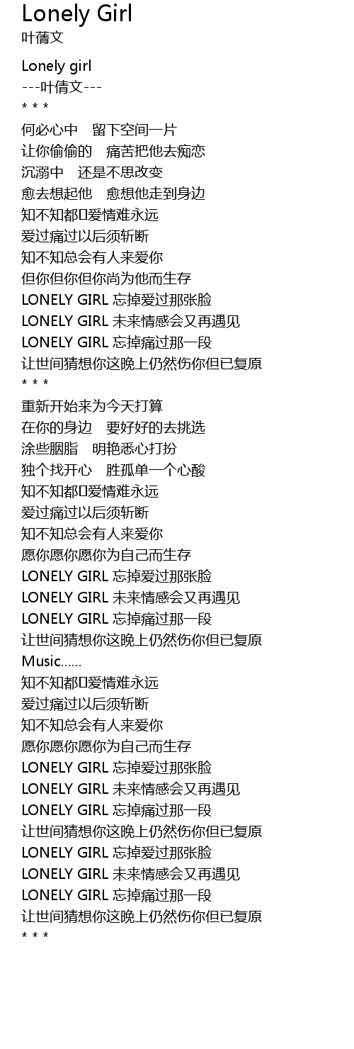 | [00:01.52] | Lonely girl |