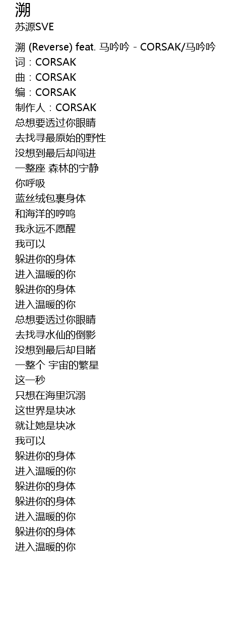 | [00:00.199] | 溯 (Reverse) feat. 马吟吟 - CORSAK/马吟吟 |