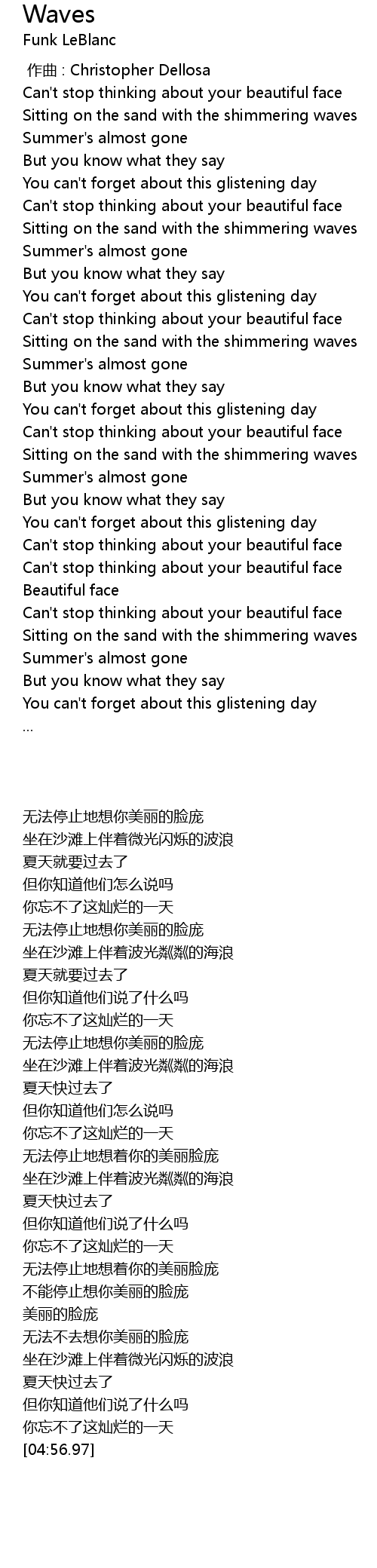 | [04:16.42] | Can't stop thinking about your beautiful face |