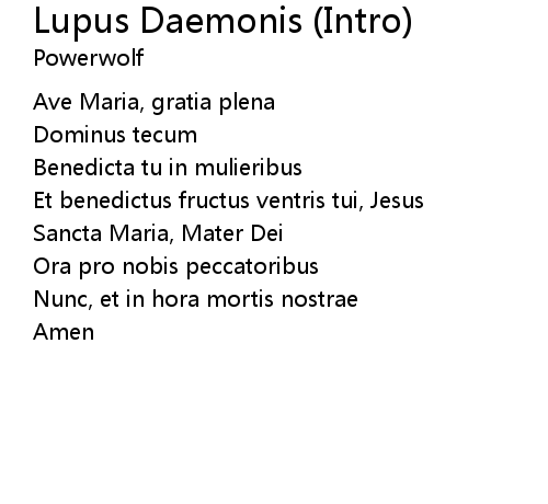 | [01:08.231] | Nunc, et in hora mortis nostrae |