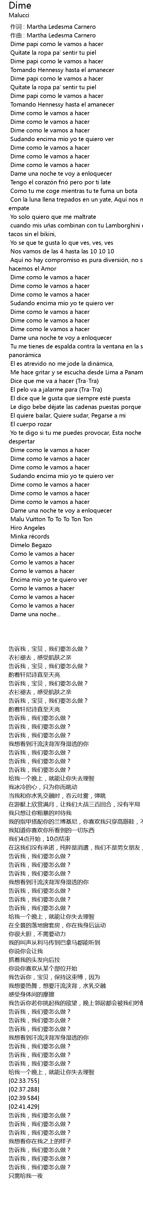 | [02:02.713] | El quiere bailar, Quiere sudar, Pegarse a mi |