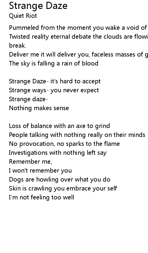 Strange Daze trying to make sense of it all [Verse 2:] |