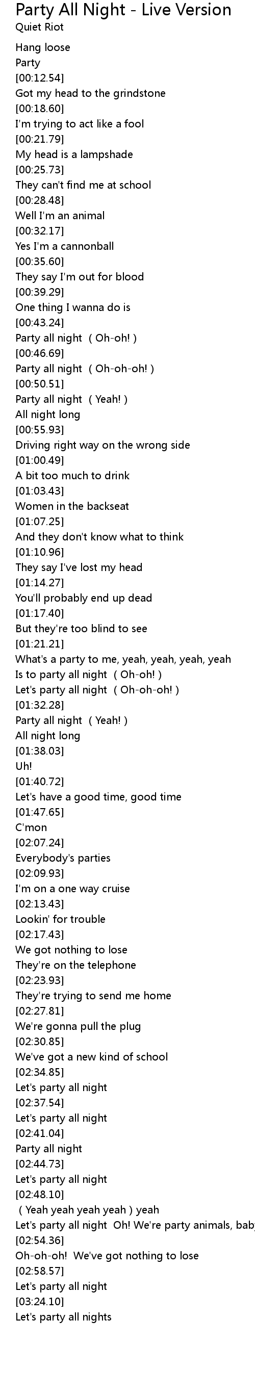 | [01:29.28] | Let's party all night (Oh-oh-oh!) |