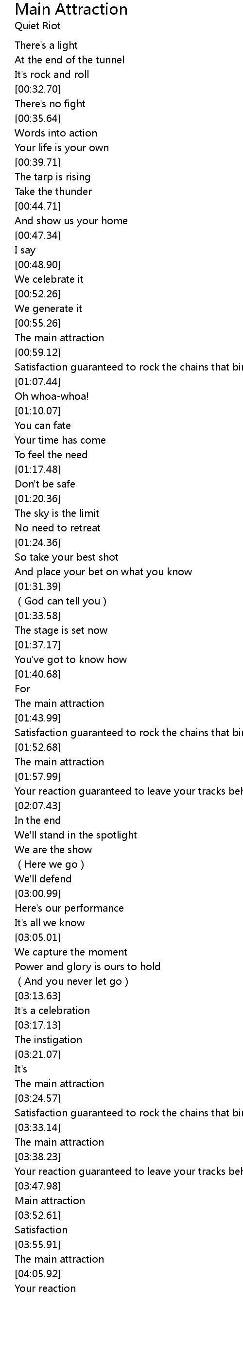 | [03:26.01] | Satisfaction guaranteed to rock the chains that bind you |