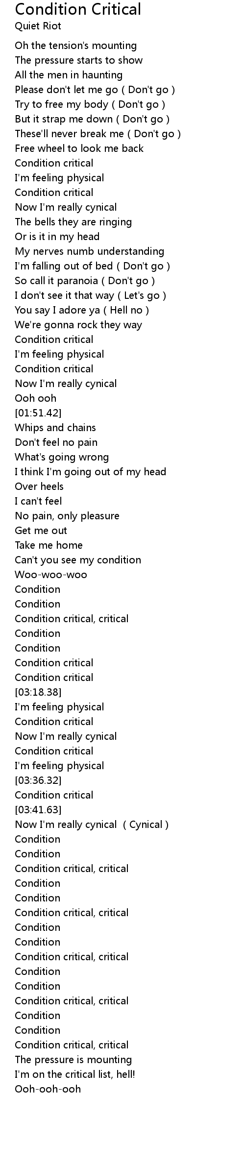 | [04:17.94] | Condition critical, critical |