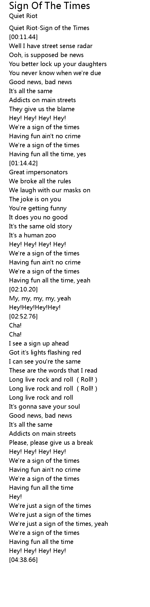 | [00:05.75] | Quiet Riot-Sign of the Times |