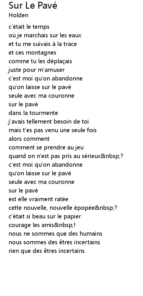 | 歌曲 | Sur Le Pavé |