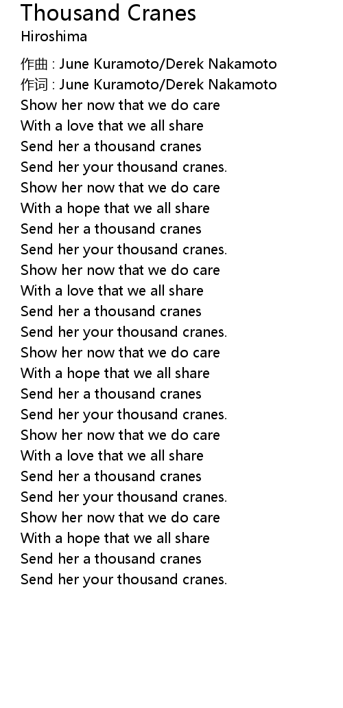 | 歌曲 | Thousand Cranes |