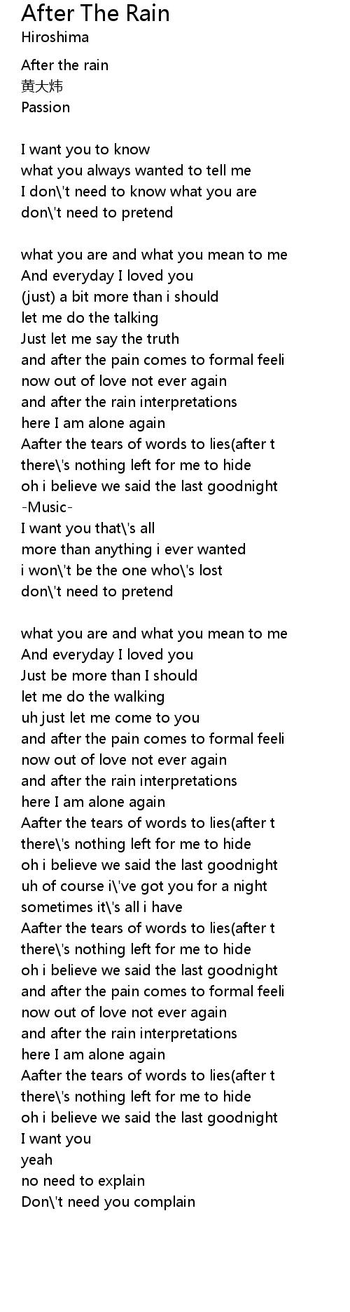 | 歌曲 | After The Rain |