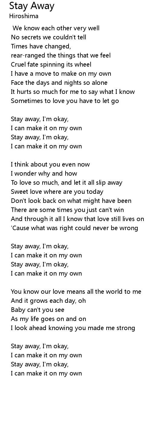 Stay away, I'm okay, |