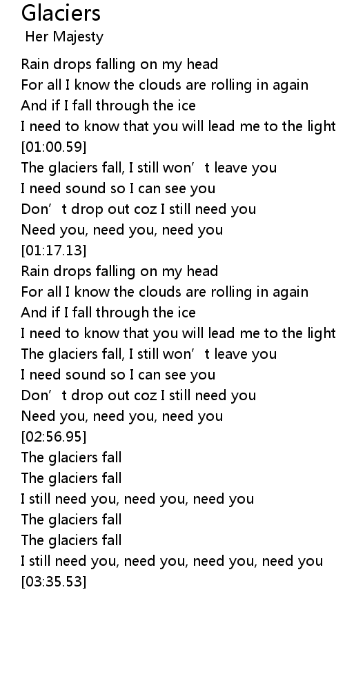 | [01:01.42] | The glaciers fall, I still won' t leave you |